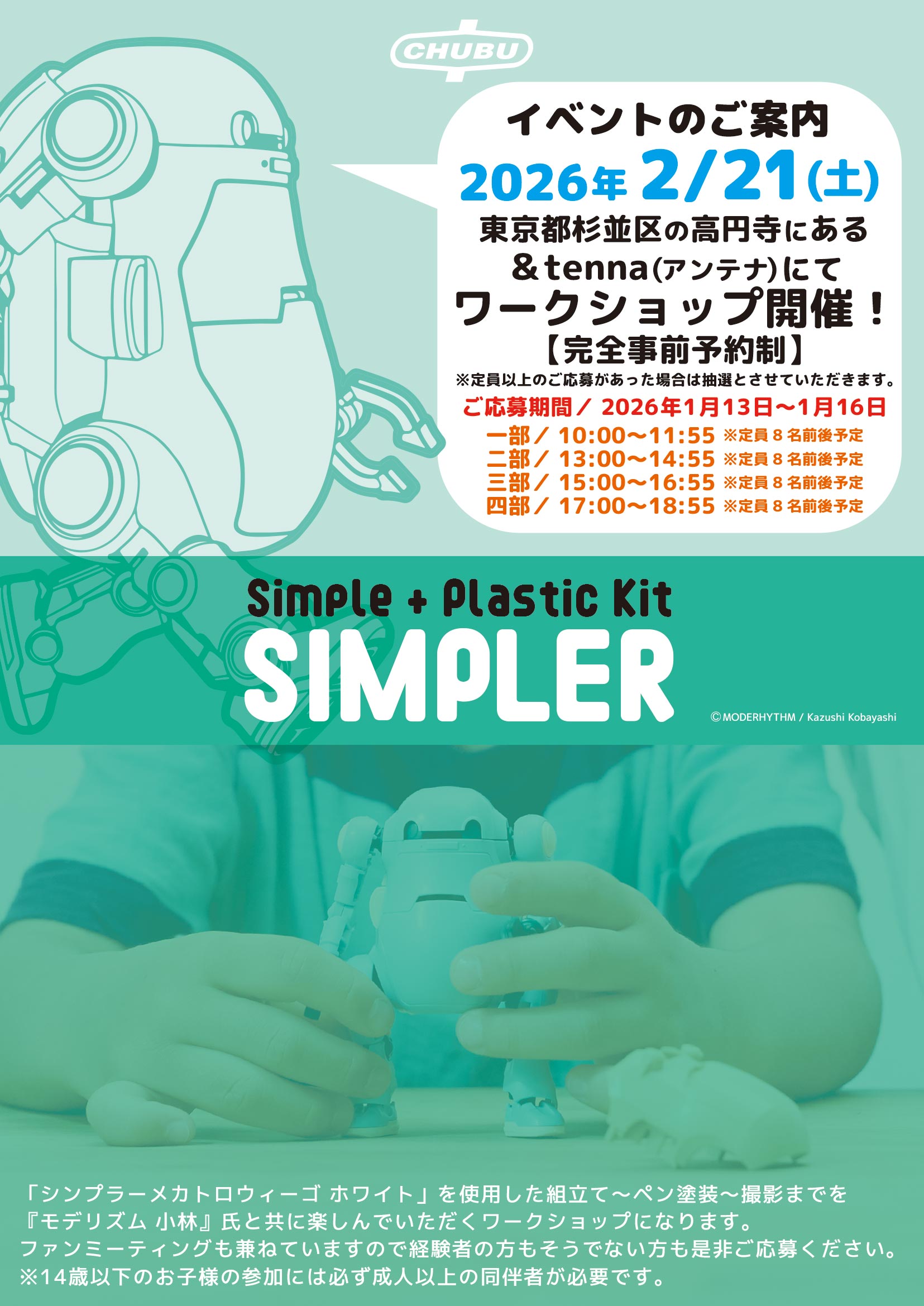 | イベント名: | シンプラーメカトロウィーゴ「ペンで塗装するワークショップ」 |