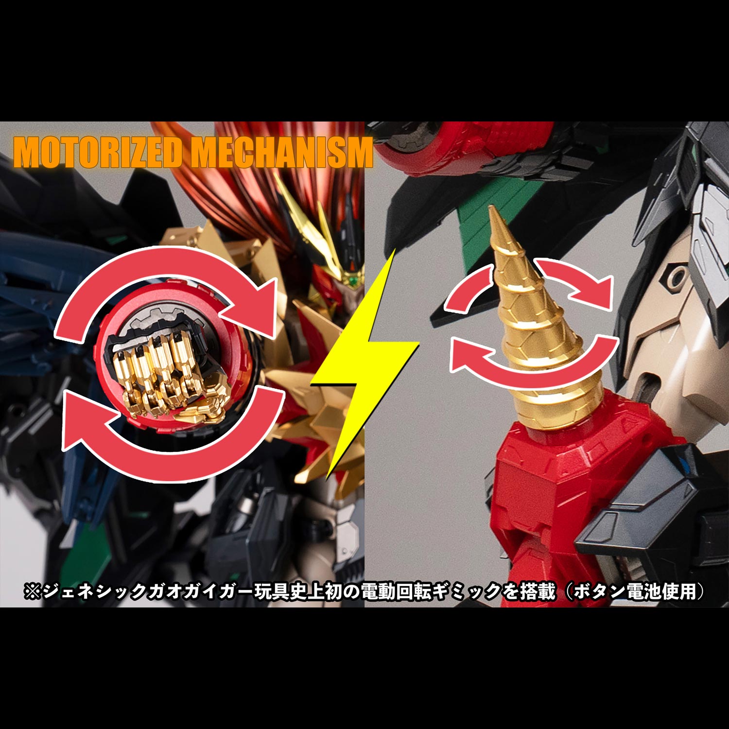 さらにジェネシックガオガイガー玩具としては初の『電動アクションギミック』を内蔵し、右腕のブロウクンマグナムや両膝のドリルが回転。劇中の迫力をこれまでにないリアルさで再現することに成功。