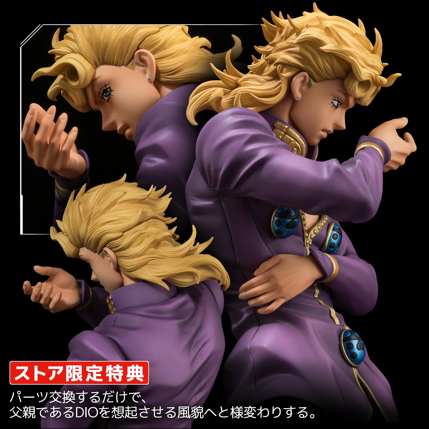 DIOの血統を感じさせる背中越しの表情と決めポーズを再現した両腕パーツはセンチネルストア限定特典。